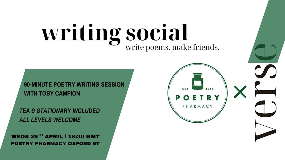 Join Toby Campion for a relaxed evening of reading and writing poetry at the Poetry Ph*rm*cy London (upstairs inside the Lush store): First Floor 175-179 Oxford Street, London W1D 2JS on Wednesday 29th April 2026 at 18:30 GMT. Spaces are limited. EARLYBIRD booking fee available. Refunds & exchanges up to 72 hours before the event.