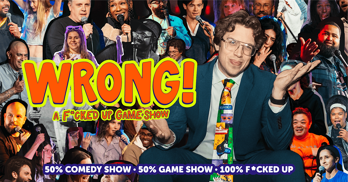 50% comedy show, 50% game show, and 100% f*cked up, WRONG! is a celebration of dark humor, cancelable offenses, and questionable social media decisions that takes everything you know about game shows and turns it on its head.