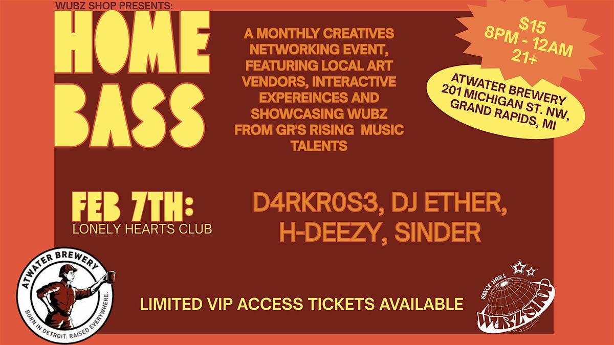 Join us on Feb 7th, for the WUBZ SHOP: HOME BASS, @ AtWater Brewery! With performances By D4RKR0S3, DJ Ether, H-Deezy, and Sinder!