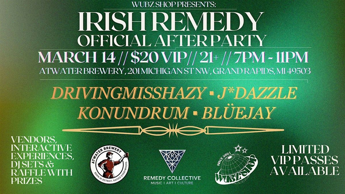 Join us on MARCH 14TH, for WUBZ SHOP: IRISH REMEDY OFFICIAL AFTER PARTY, @ AtWater Brewery! With performances by DrivingMissHazy, J*Dazzle, Konundrum & our Legacy DJ: Blüejay!