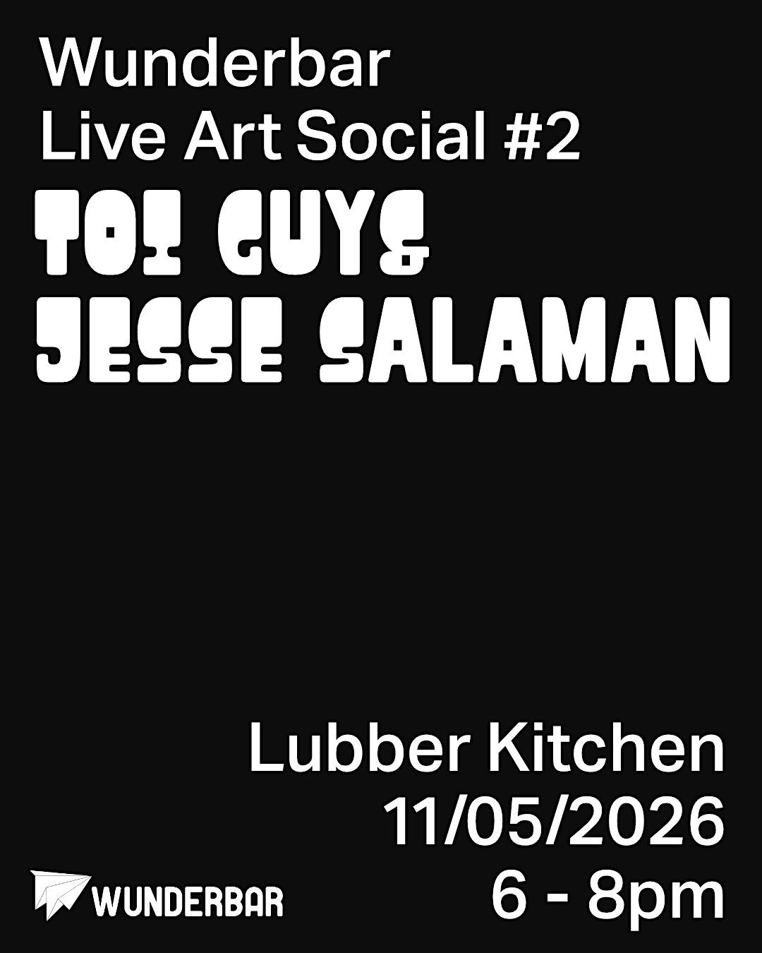 Wunderbar Live Art Social #2: Toi Guy and Jesse Salaman at Lubber Kitchen