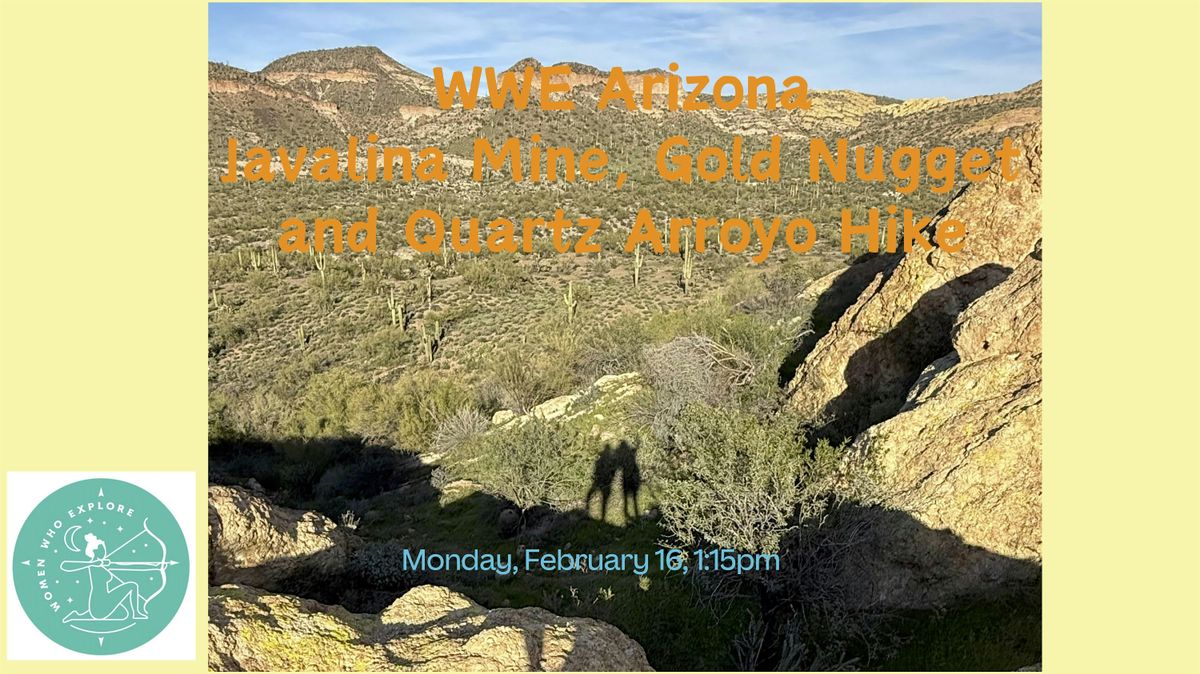 The hike enters the Goldfield Mountains thru a corridor known as the Golden Hillside. It is a lasso or lollipop trail and we eventually reach Willow Springs Basin before looping back. Lots of scenery and rock formations to explore. As we hike back out we will have a beautiful view of Superstitions at sunset. 6.2 miles and 830 foot elevation gain. It may be closer to 7 miles as we explore some side views. All Trails description: https://www.alltrails.com/trail/us/arizona/javalina-mine-trail-golden-nugget-and-quartz-arroyo-trail