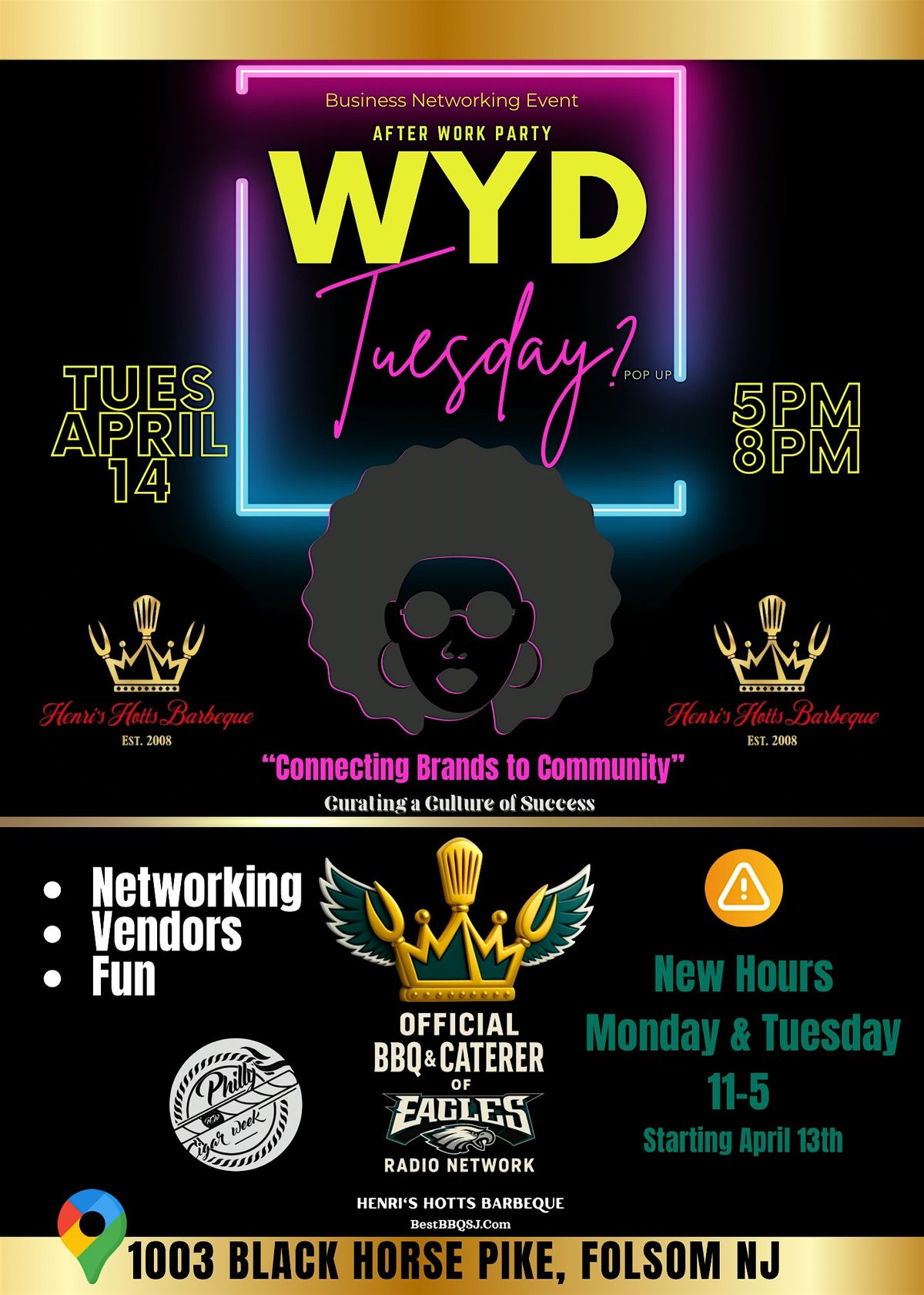 🤝 WYD TUESDAY NETWORKINGThe networking event that actually feels like community. Connect with local entrepreneurs, business owners, and community builders in a relaxed, authentic atmosphere.