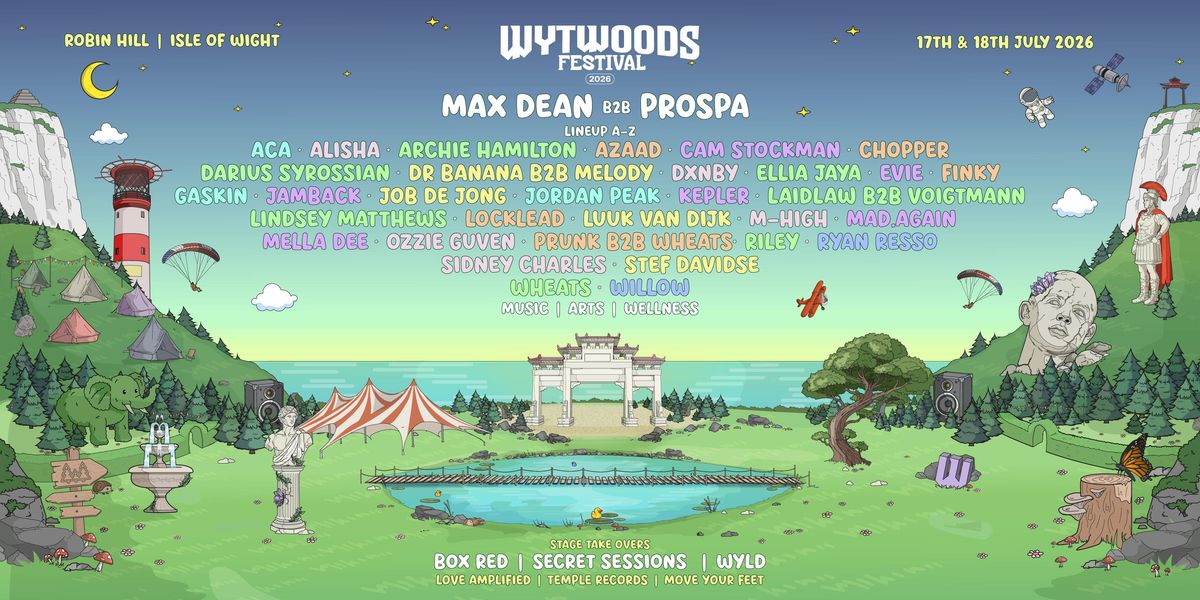 WYTWOODS opens its doors on 17th&18th of July, a brand new debut festival. With 2 days and nights of music, arts and wellness with camping & glamping included.Bringing you multiple bespoke stages and a hand picked lineup including Max Dean, Prospa, Sidney Charles, Alisha, Dr Banana, Jamback, Wheats plus 50+ additional artists. We'll also be hosting 2 days of wellness & arts classes and takeovers.