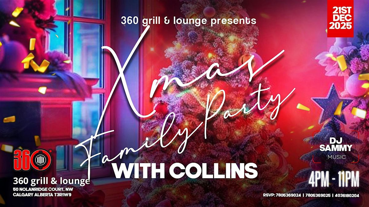 Celebrate the joy of the season at the Xmas Family Party with Collins, a festive family-friendly event presented by 360 Grill & Lounge. Join us for an evening filled with great music by DJ Sammy, delicious food, and a warm holiday atmosphere as we come together to welcome the Christmas season. The event takes place on December 21st, 2025, from 4:00 PM to 11:00 PM at 360 Grill & Lounge, 50 Nolanridge Court NW, Calgary, making it the perfect outing for families and friends to relax, connect, and celebrate the holidays together. 🎄