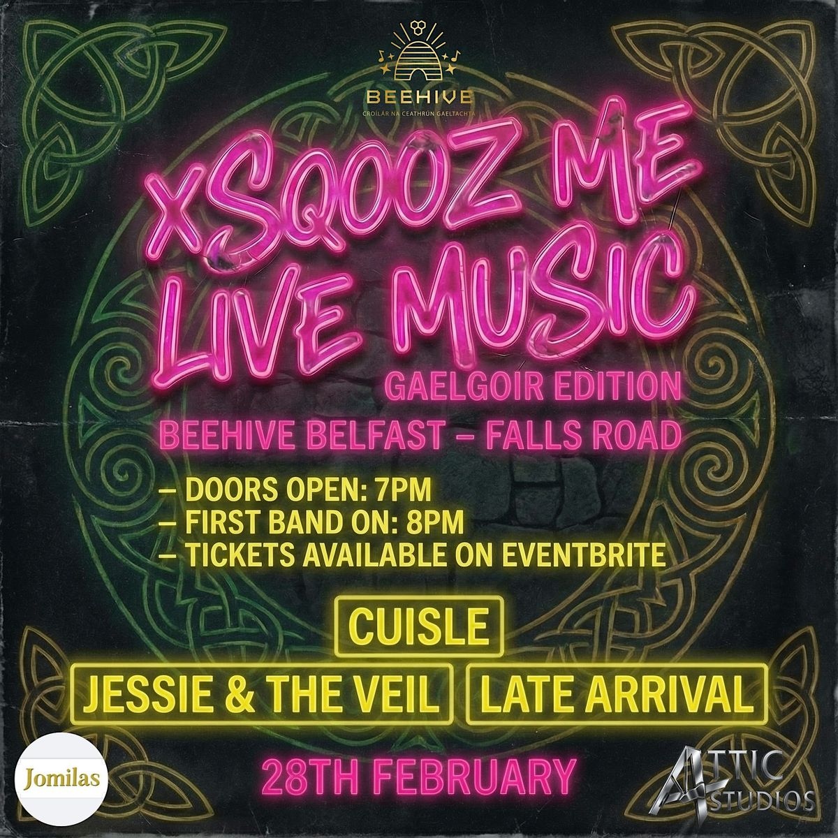 Our battle of the bands winners Cuisle are back with Jesse & the veil + Late arrival to the Beehive in the heart of the Gaeltacht Quarter!About this Event