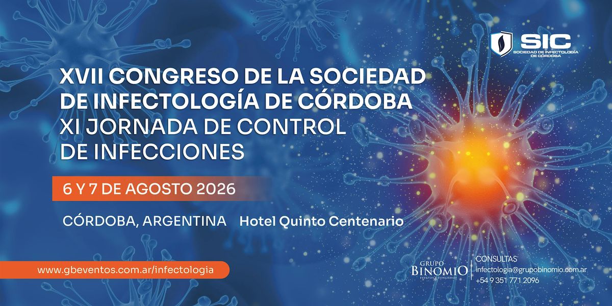 XVI Congreso de la Sociedad de Infectología de Córdoba y XI Jornadas de Control de Infecciones 6 y 7 de agosto de 2026 - CórdobaAbout this Event