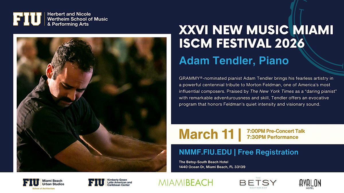 GRAMMY® Award–nominated pianist Adam Tendler brings his fearless artistry to The Betsy-South Beach Hotel Gallery in a powerful centennial tribute to Morton Feldman, one of America’s most influential and quietly radical composers.