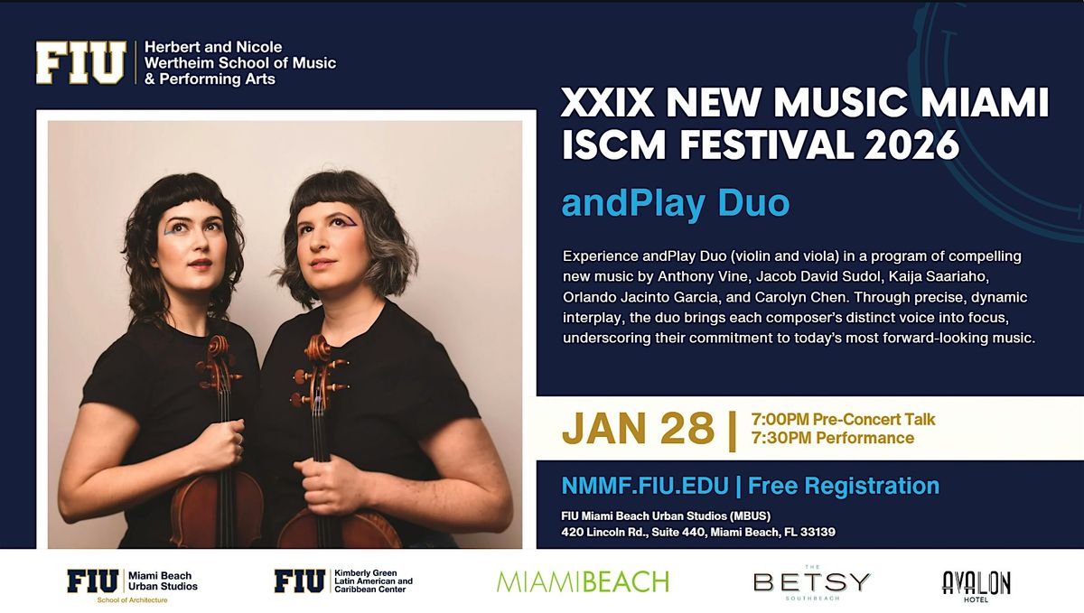 Experience andPlay Duo (violin and viola) in an evening of compelling new music by Ezequiel Viñao, Jacob David Sudol, Kaija Saariaho, Orlando Jacinto Garcia, and Carolyn Chen.