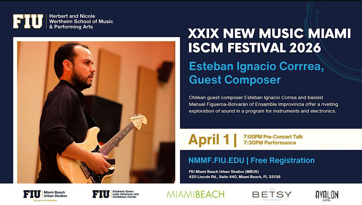Correa, an established concert composer with a catalog of nearly 50 works spanning orchestral, chamber, solo, and theatrical music performed across Chile and internationally, brings expressive depth and inventive sound design to this evening’s performance. His music has been commissioned and presented by leading ensembles throughout Latin America.