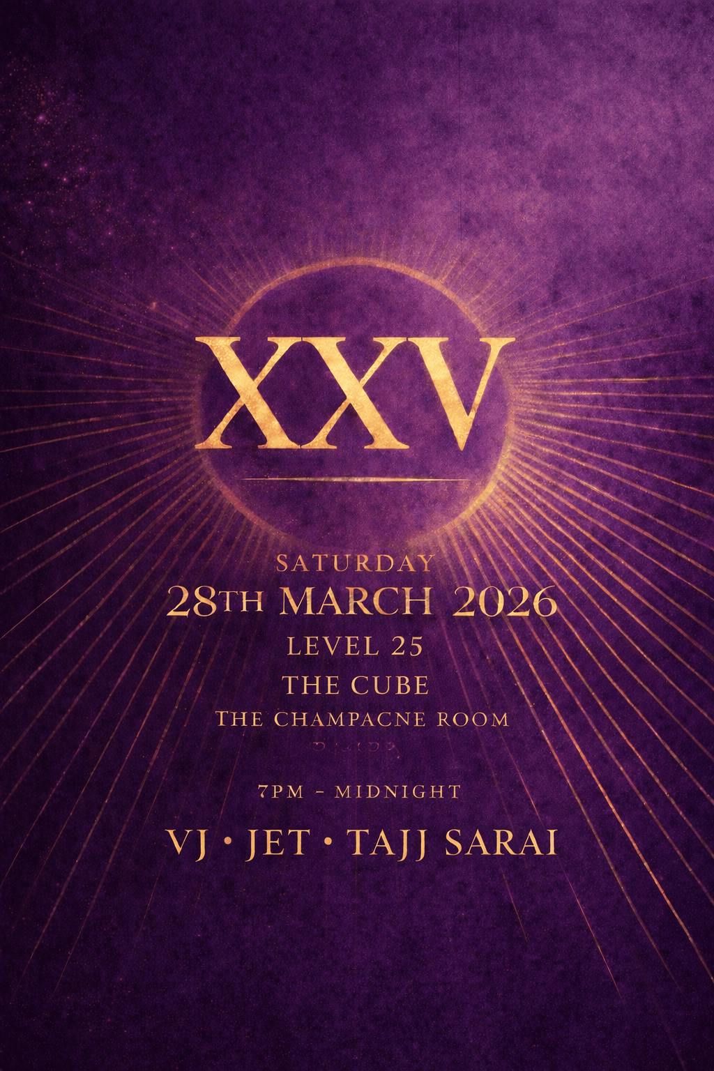 Saturday 28th March 2026Level 25, The Cube – The Champagne Room