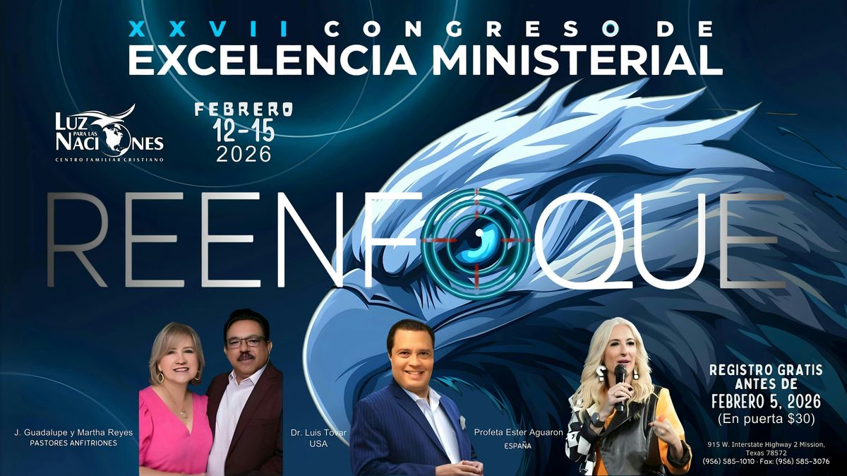 El XXVII Congreso de Excelencia Ministerial “Reenfoque” es un tiempo especial de capacitación, renovación espiritual y visión para líderes y ministerios. Se llevará a cabo del 12 al 15 de febrero de 2026 en Luz para las Naciones, con la participación de invitados especiales nacionales e internacionales. Un evento diseñado para fortalecer el llamado, reenfocar el propósito y crecer en excelencia ministerial.