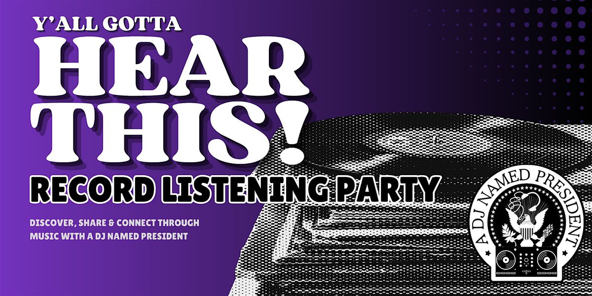 Y’all Gotta Hear This! is a community record listening party presented by A DJ Named President where music lovers gather to share songs they love, this month with a highlight on women. Guests are invited to bring a vinyl record and play one song by a woman artist that has inspired them, moved them, or stayed with them over time.