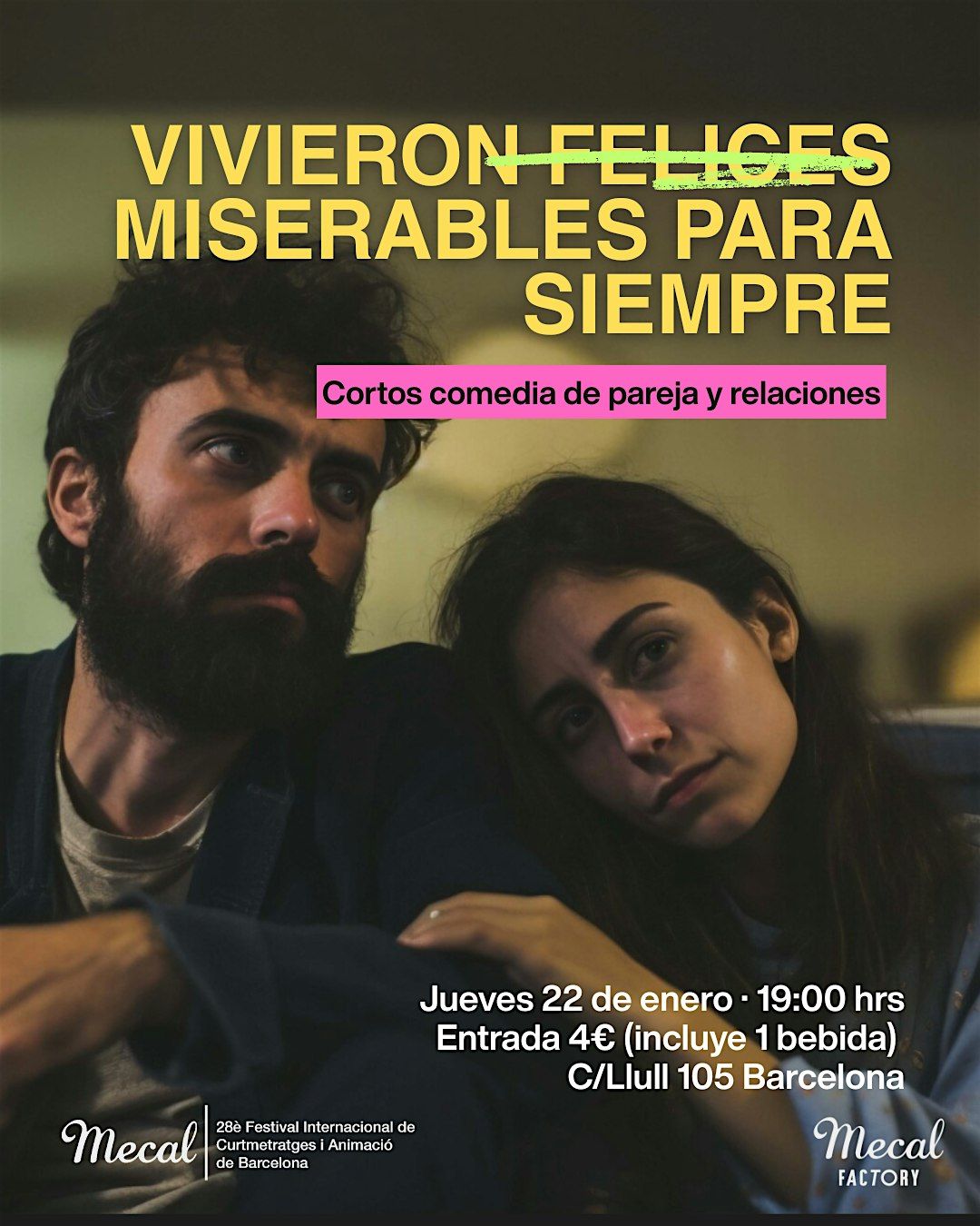 Si todavía crees en los finales felices, esta sesión de cortos no es para ti. Te esperamos en "Y vivieron felices miserables para siempre", una oda cinematográfica a las discusiones por el color de las cortinas y las citas de Tinder que parecen sacadas de un psiquiátrico.