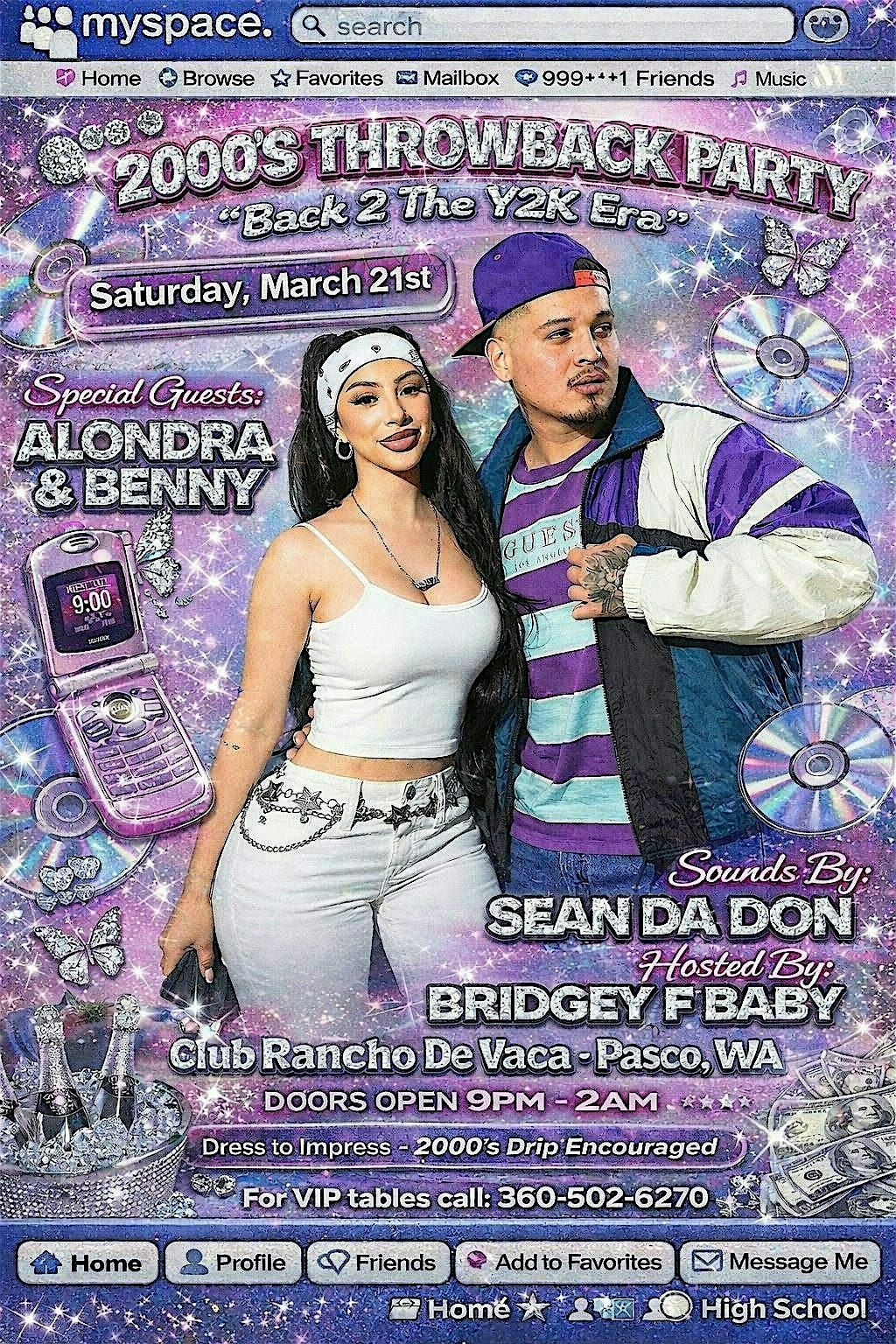 Get ready to party like it's the early 2000s at El Rancho De Las Vacas with Alondra & Benny! Join us on March 21, 2026 at 9:00 PM (PDT). Bring your best throwback outfit and let's make it a night to remember!