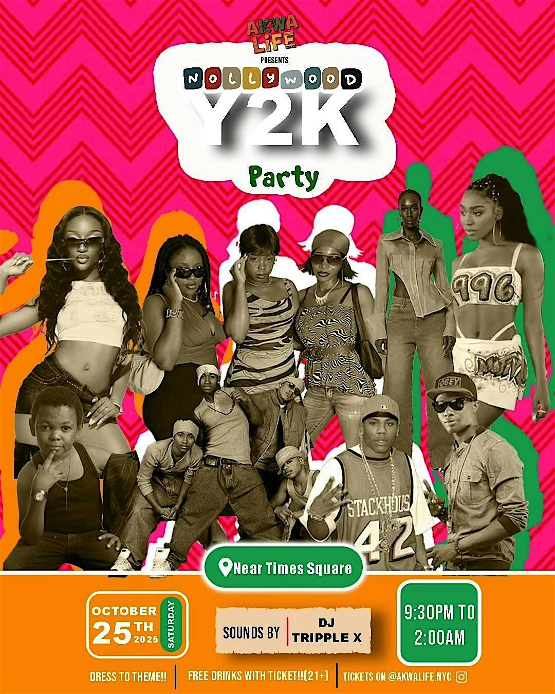 Come join us for a blast from the past at our Y2K/Nollywood Party! DRINKS ARE FREE!! 🍹Just grab your ticket! And to keep things intimate, tickets will be limited, so just get yours now!Get ready to dance the night away to your favorite hits from the early 2000s and groove to the hottest Nollywood tunes. Dress in your best Y2K or Nollywood-inspired outfit.