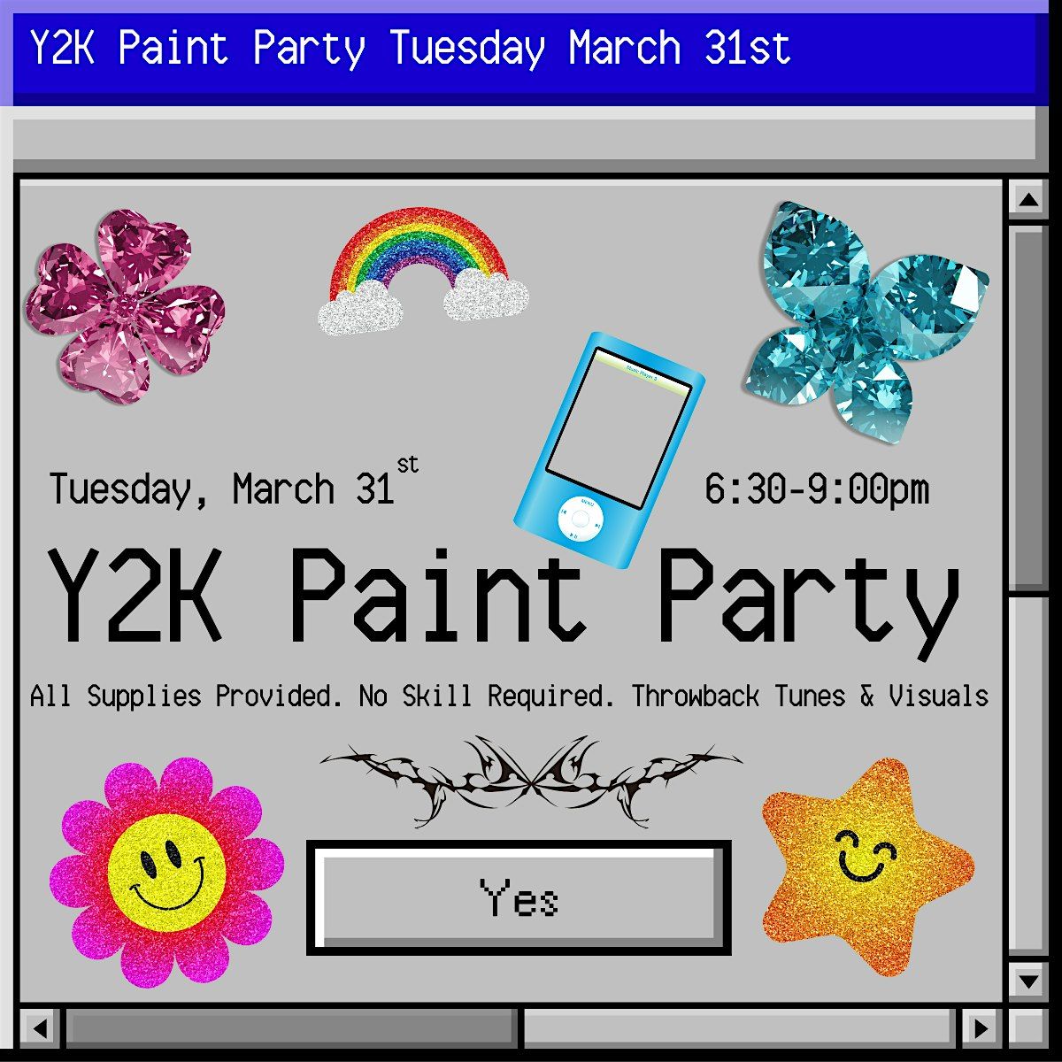 Bring your flip phone & butterfly clips, and turn up the TRL. The Y2K Paint Party is a throwback creative hang inspired by the early-2000s aesthetic. This is a social, low-pressure paint night where you come to make something fun, not perfect.