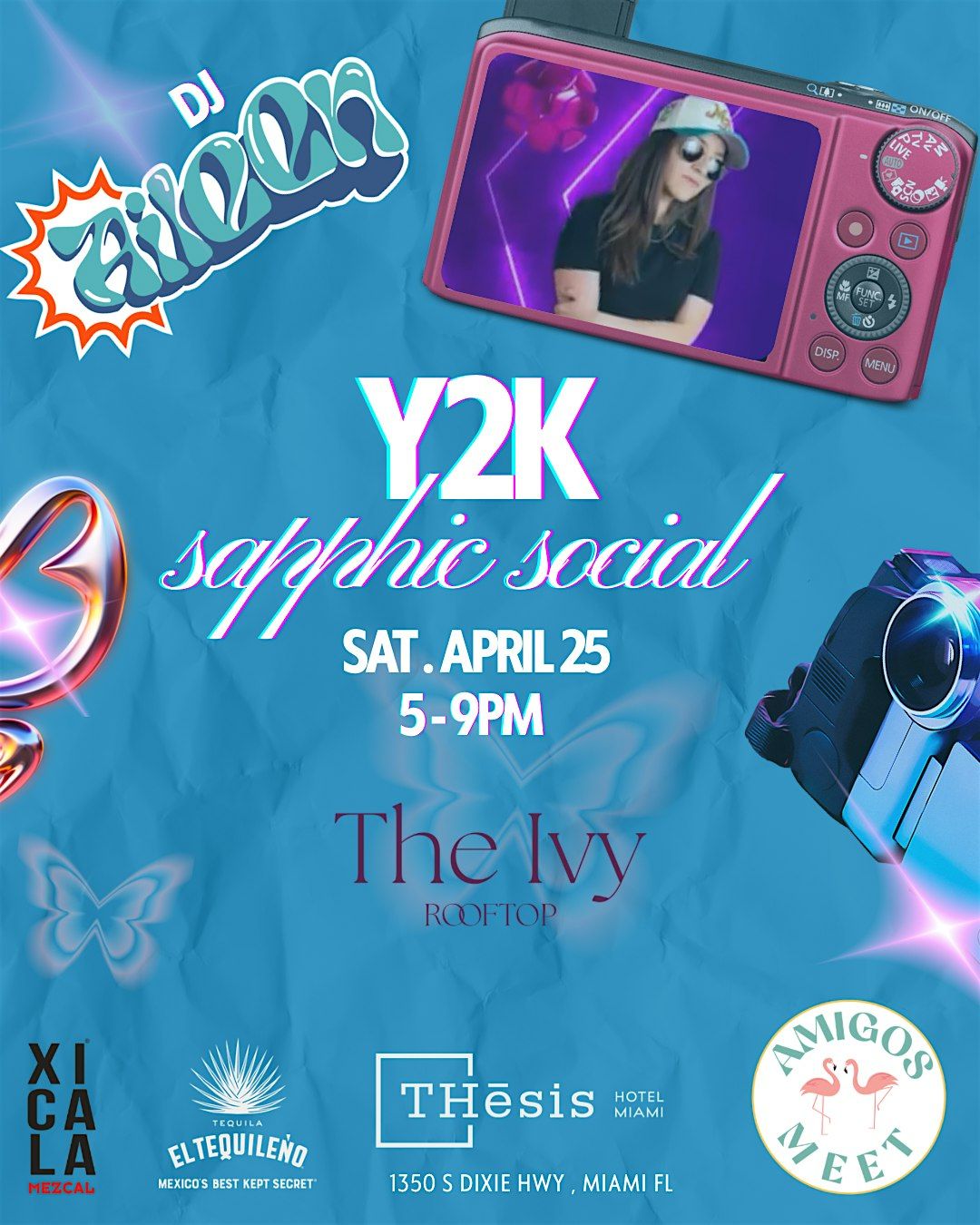 Step into a nostalgic sunset at our Sapphic Y2K Rooftop Party 💿✨ Join us for an evening of throwback beats, community, and dancing in the open air as the sun sets over a beautiful rooftop.