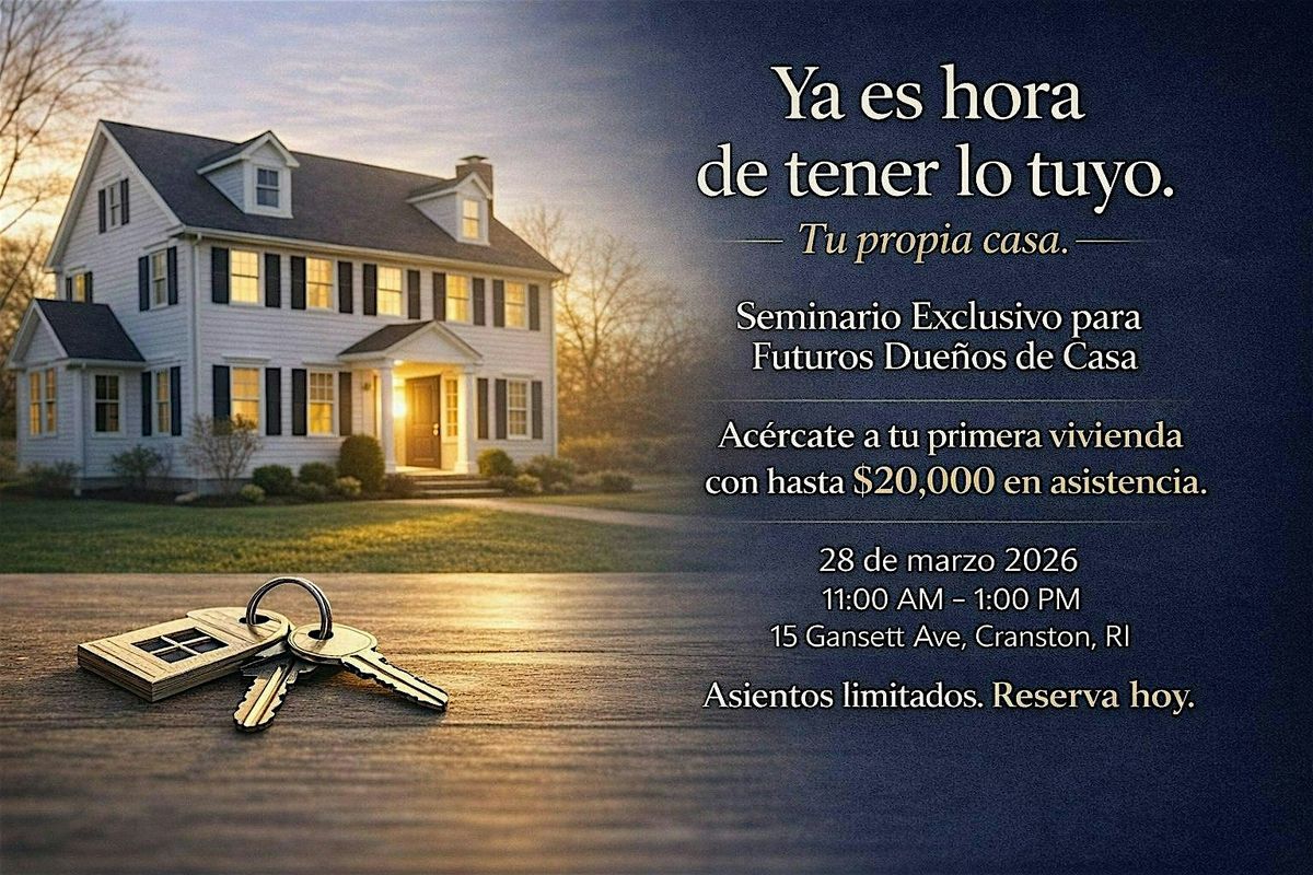Sigues rentando y soñando con tener algo propio? Ya es hora de dar el paso hacia tu propia casa. En este seminario aprenderás claramente qué necesitas para comprar, cómo funciona la preaprobación y cómo podrías calificar para hasta $20,000 en asistencia para el pago inicial y costos de cierre. Descubre las opciones reales disponibles en Rhode Island y cómo prepararte estratégicamente. Asientos limitados. Reserva tu lugar hoy.