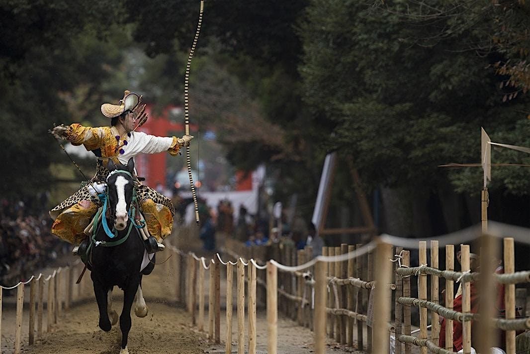 Yabusame is an ancient and sacred Japanese ritual where horse-mounted archers, dressed in traditional attire from historical periods such as Heian, Kamakura, Muromachi, and Edo, gallop along a quarter-mile course while shooting arrows at a series of targets. This captivating display not only embodies the spirit of Bushido—the moral code of the samurai—but also educates audiences and celebrates Japan’ s rich cultural heritage.