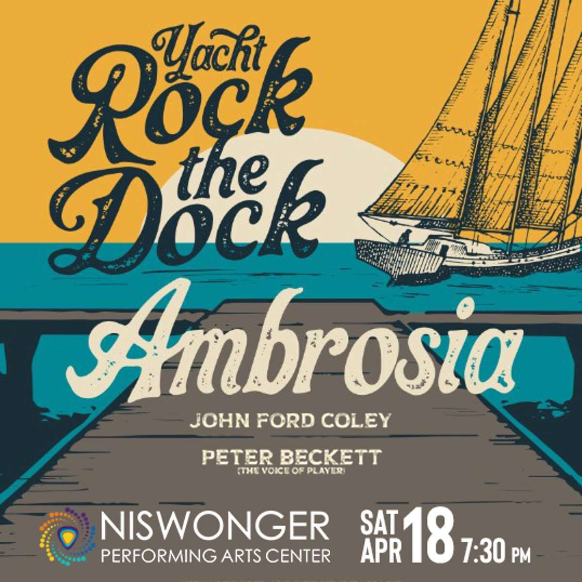 🎉 Welcome to Yacht Rock The Dock Ambrosia & John Ford Coley, where the impossible becomes possible and dreams take flight! 🏛️ Join us at Niswonger Performing Arts Center - Greeneville in the heart of Greeneville, TN for an event that will redefine your expectations. 📅 On April 24th, 2026 at 07:00 PM, witness the transformation of space and time into something truly magical. ✨ It's a curated experience combining the best of innovation, entertainment, and community spirit, creating moments that will be remembered for years to come. Whether you're a first-time visitor or a seasoned enthusiast, prepare to be amazed. 🎊 Book now to ensure your place in this unforgettable experience!http://maps.seatics.com/NiswongerPerformingArtsCenter_EndStage_2018-07-06_2018-07-06_1534_SVGC_tn.gif