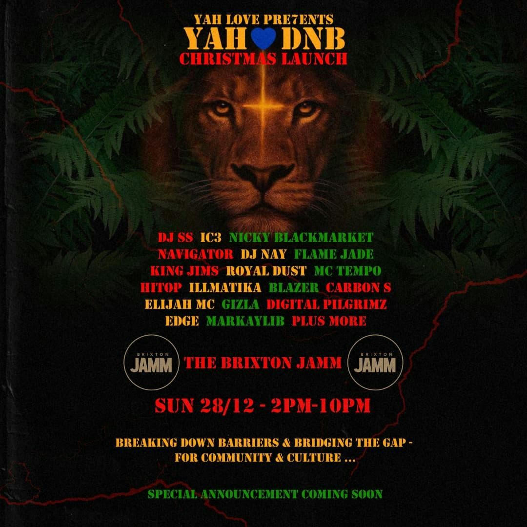 YAH 💙 DNB is a grassroots day party created to unite people through the universal languages of music, culture, and community.Launching this Christmas at The Brixton Jamm, the beating heart of South London’s drum and bass and jungle scene, the event celebrates the powerful roots of the very genres of music which have helped form the foundation from which DnB was born.