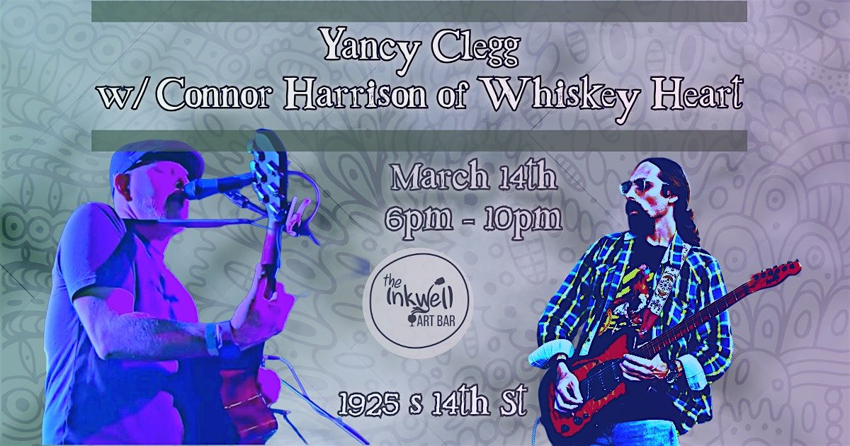 Known for his dynamic live sets at The Inkwell, Yancy Clegg returns for a special performance on March 14th, this time joined by guest musician Connor Harrison of Whiskey Heart.