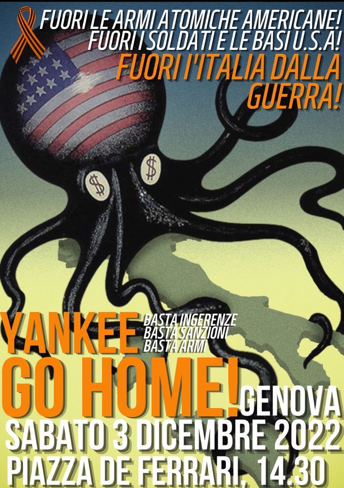 Diciamo no alle politiche di guerra della Nato, alle sanzioni, all'invio di armi al regime di Kiev, alla presenza militare americana e alle sue atomiche nel nostro paese.Per la pace, la fratellanza fra i popoli e l'indipendenza nazionale.