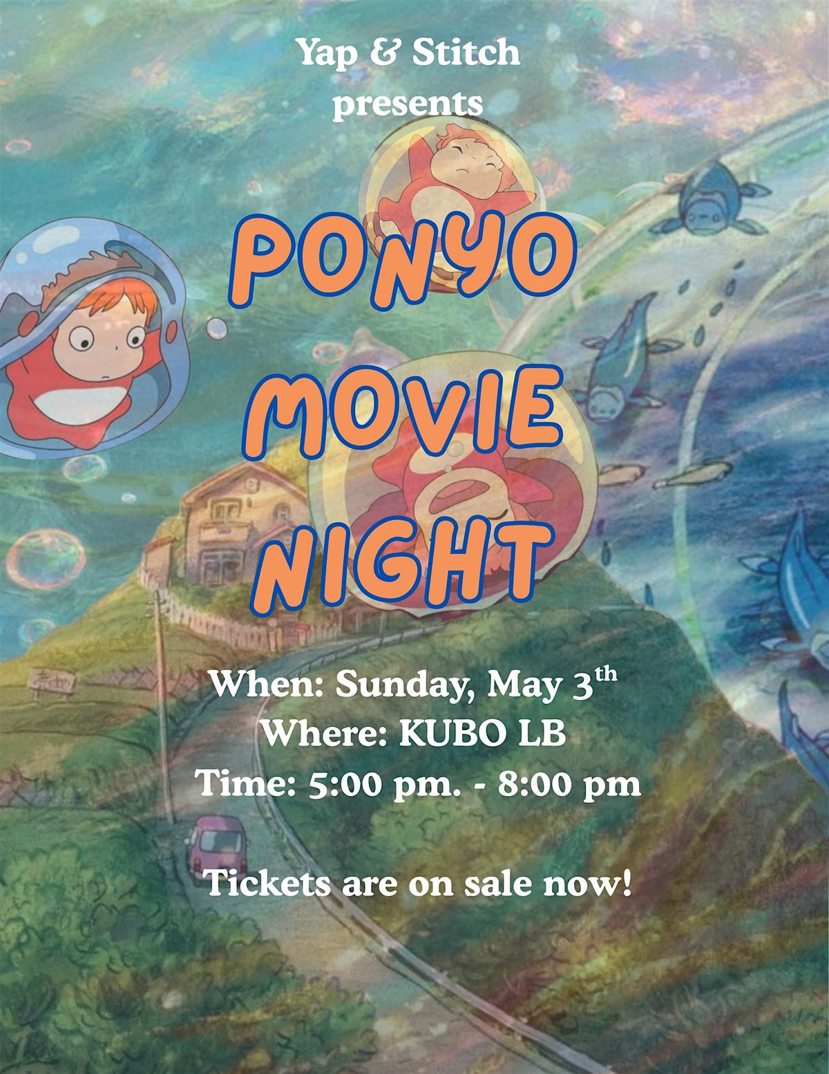 Info: we will watch Ponyo & craft!!! Please note: the light will be dimmed! (enough to see our craft & watch the movie)