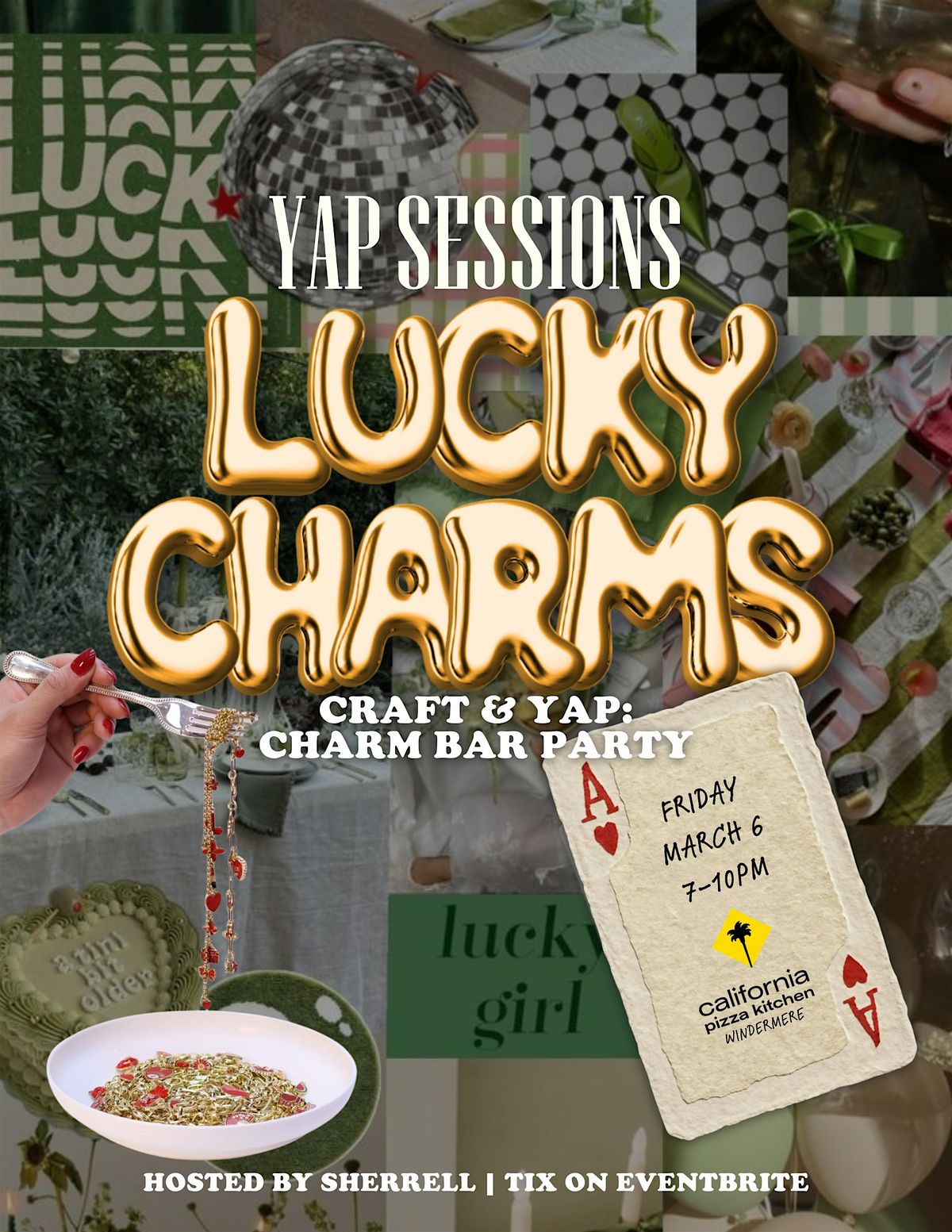 Join us for a cozy charm bar experience where you’ll design your own custom charm bracelet or keychain — whether it’s lucky, sentimental, bold, or just cute. Think girls’ night energy, R&B in the background, laughter at the table, and zero pressure to be anything but yourself.