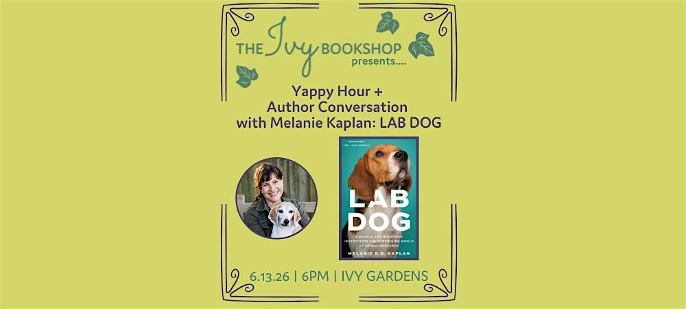 Join us in the gardens out behind the Ivy Bookshop for a dog-themed happy hour ("yappy hour"!) and conversation with Melanie D. G. Kaplan, author of Lab Dog: A Beagle and His Human Investigate the Surprising World of Animal Research.