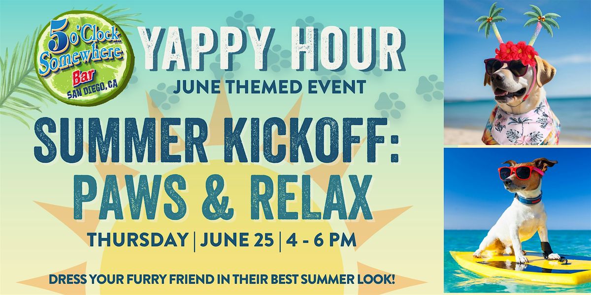Kick off summer at our rooftop Yappy Hour: Paws & Relax, a laid-back, pup-friendly happy hour with skyline views and island vibes. Bring your furry friend and enjoy an afternoon of frozen margaritas, great company, and tail-wagging fun in the heart of the Gaslamp Quarter.