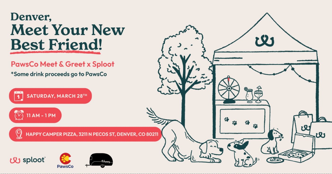 Join us at Happy Camper in LoHi for a tail-wagging good time with Sploot Veterinary Care and our adoptable pups!