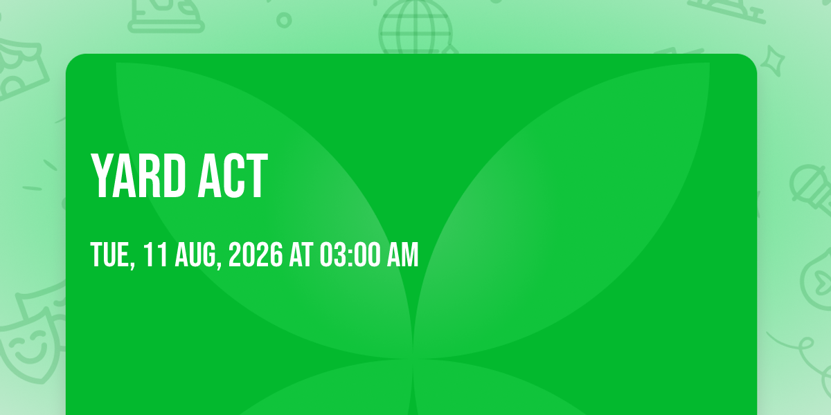 📍 Location: 47.6612, -122.314✨ Discover the extraordinary at YARD ACT, where magic meets reality in ways you've never imagined! 🏛️ Set in Neptune Theatre - WA nestled in bustling Seattle, WA, this event promises to be a landmark occasion. 📅 Taking place on August 11th, 2026 at 03:00 AM, it's going to create an atmosphere where every moment becomes a cherished memory. 🌟 Immerse yourself in an experience crafted with attention to every detail, designed to surprise and delight at every turn. They have worked tirelessly to ensure this event exceeds all expectations, bringing together elements of entertainment, innovation, and pure joy. 🎊 Don't miss your chance to be part of this remarkable journey!