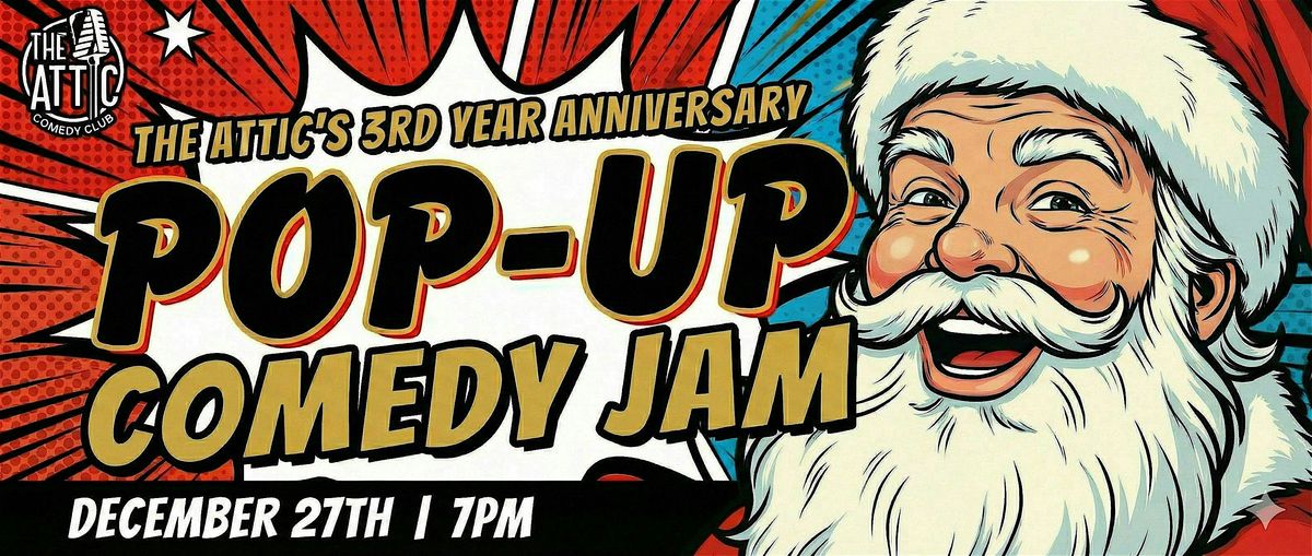 Join us on Saturday, December 27th, as The Attic Comedy Club celebrates its 3rd Year Anniversary with a special edition of the Pop-Up Comedy Jam.