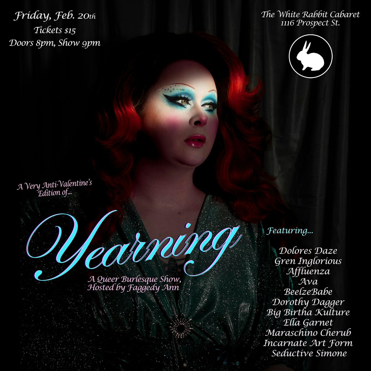 Yearning returns for a special post-Valentine's Day engagement. Join us for a night of sultry queer burlesque and variety acts that explore the nature of wanting - the sensual, the sentimental, and the satirical. Draglesque artist Faggedy Ann hosts with their signature mix of southern charm, glamour, and comedy styling, delivering thoughtful humor between titillating acts. This is a night of artfully curated performances determined to dazzle and inspire emotion, all on one of the most iconic stages in Indy. If desire is the root of all suffering, how can we take pleasure in the pain? The anticipation is half the fun! Come out for the burlesque, stay for the Yearning.