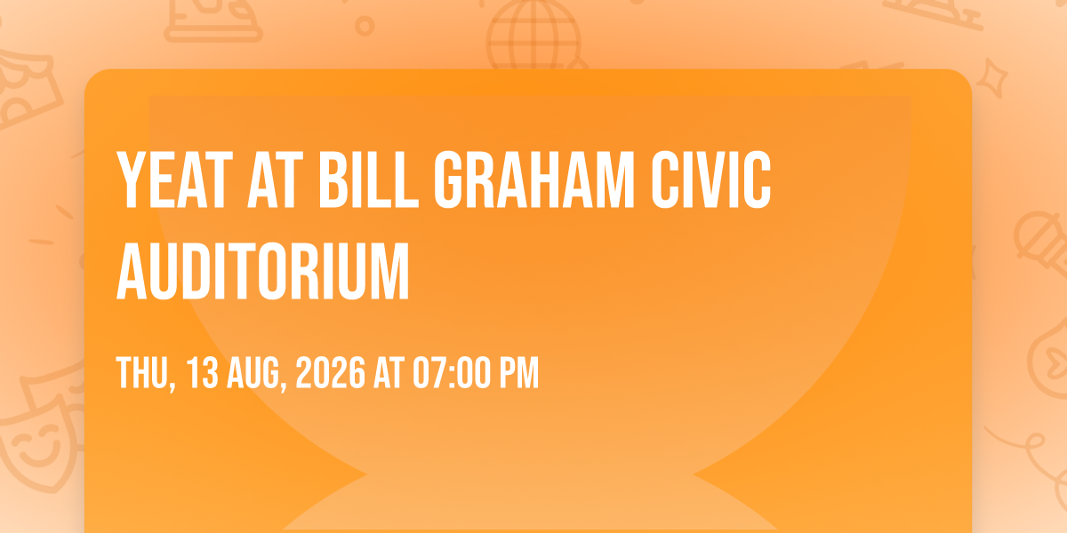 ✨ Experience the magic of Yeat at Bill Graham Civic Auditorium, where moments become memories that last a lifetime! 🏛️ The iconic Bill Graham Civic Auditorium in San Francisco, CA sets the perfect stage for an unforgettable celebration on August 13th, 2026 at 07:00 PM. 🌟 It's been a curated experience that brings together the best of entertainment and innovation, creating an atmosphere of wonder and excitement. From the moment you arrive, you'll be immersed in a world where the ordinary transforms into the extraordinary. 🎊 Book early to secure your place in what promises to be an event that will be talked about for years to come!