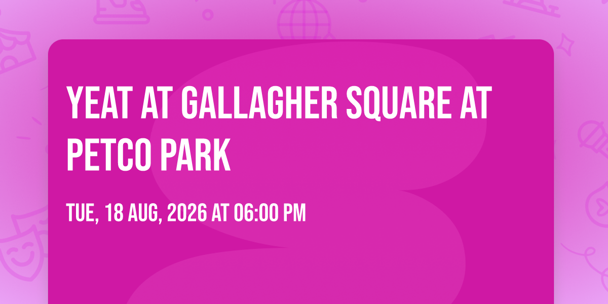 🌟 Step into a world of wonder at Yeat at Gallagher Square at PETCO Park, where extraordinary moments await! 🏛️ Located at Gallagher Square at PETCO Park in dynamic San Diego, CA, this event will become the talk of the town. 📅 Join us on August 18th, 2026 at 06:00 PM for a celebration that defies the ordinary. ✨ This curated experience brings together the best of entertainment, culture, and community spirit. Every detail has been thoughtfully planned to ensure an unforgettable experience for all our guests. 🎯 Take advantage of this opportunity to be part of something special. 🎊 Early registration is recommended as space is limited!