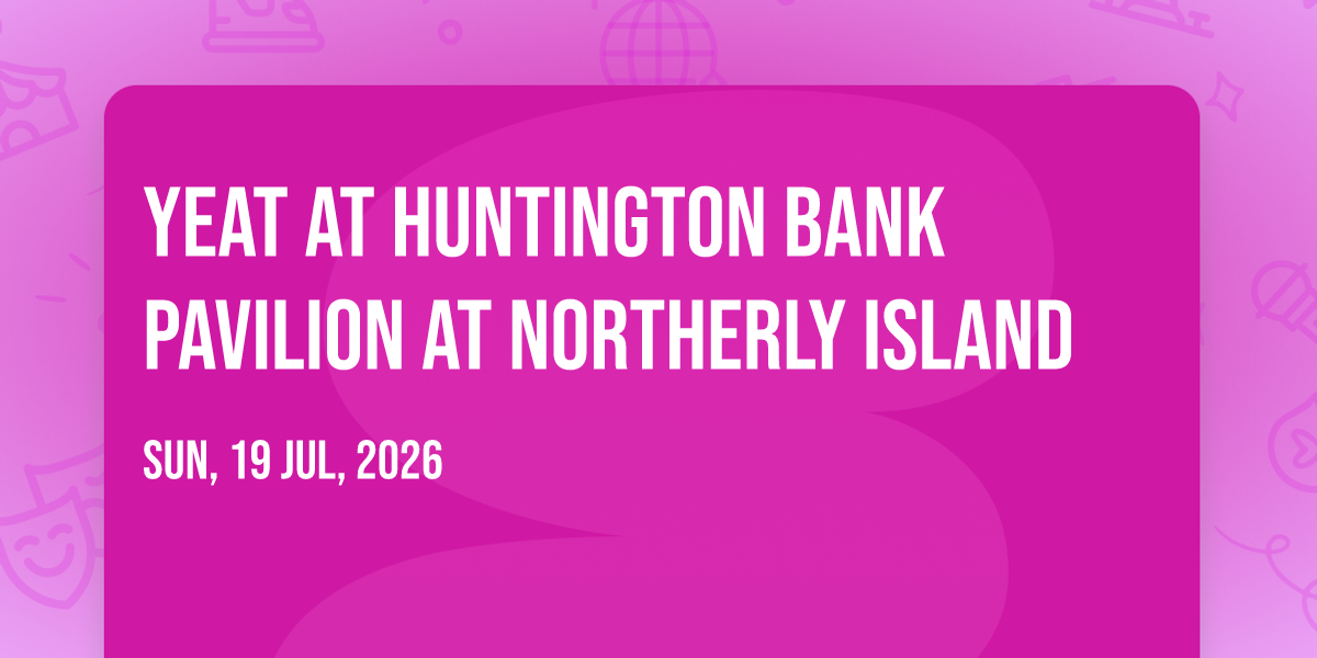 ✨ Discover the extraordinary at Yeat at Huntington Bank Pavilion at Northerly Island, where magic meets reality in ways you've never imagined! 🏛️ Set in Huntington Bank Pavilion at Northerly Island nestled in bustling Chicago, IL, this event promises to be a landmark occasion. 📅 Taking place on July 19th, 2026 at 07:00 PM, it's going to create an atmosphere where every moment becomes a cherished memory. 🌟 Immerse yourself in an experience crafted with attention to every detail, designed to surprise and delight at every turn. They have worked tirelessly to ensure this event exceeds all expectations, bringing together elements of entertainment, innovation, and pure joy. 🎊 Don't miss your chance to be part of this remarkable journey!