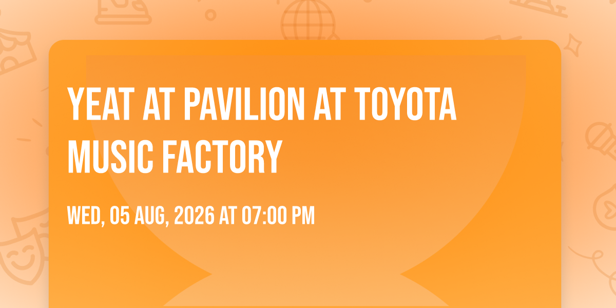 🎉 Prepare to be amazed at Yeat at Pavilion at Toyota Music Factory, the most anticipated gathering of the season! 🌟 Set against the stunning backdrop of Pavilion at Toyota Music Factory in vibrant Irving, TX, this event promises to redefine your expectations. 📅 Mark your calendars for August 5th, 2026 at 07:00 PM and get ready to immerse yourself in an atmosphere of wonder and excitement. ✨ From the moment you arrive, you'll be transported into a world where memories are made and stories come alive. They have crafted an experience that perfectly harmonizes entertainment, innovation, and community spirit. 🌈 Join us as we create moments that will be discussed for years!