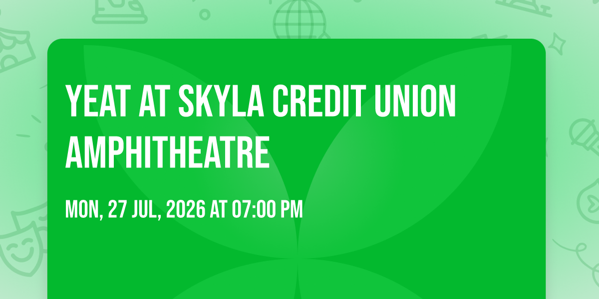 ✨ Experience the magic of Yeat at Skyla Credit Union Amphitheatre, where moments become memories that last a lifetime! 🏛️ The iconic Skyla Credit Union Amphitheatre in Charlotte, NC sets the perfect stage for an unforgettable celebration on July 27th, 2026 at 07:00 PM. 🌟 It's been a curated experience that brings together the best of entertainment and innovation, creating an atmosphere of wonder and excitement. From the moment you arrive, you'll be immersed in a world where the ordinary transforms into the extraordinary. 🎊 Book early to secure your place in what promises to be an event that will be talked about for years to come!