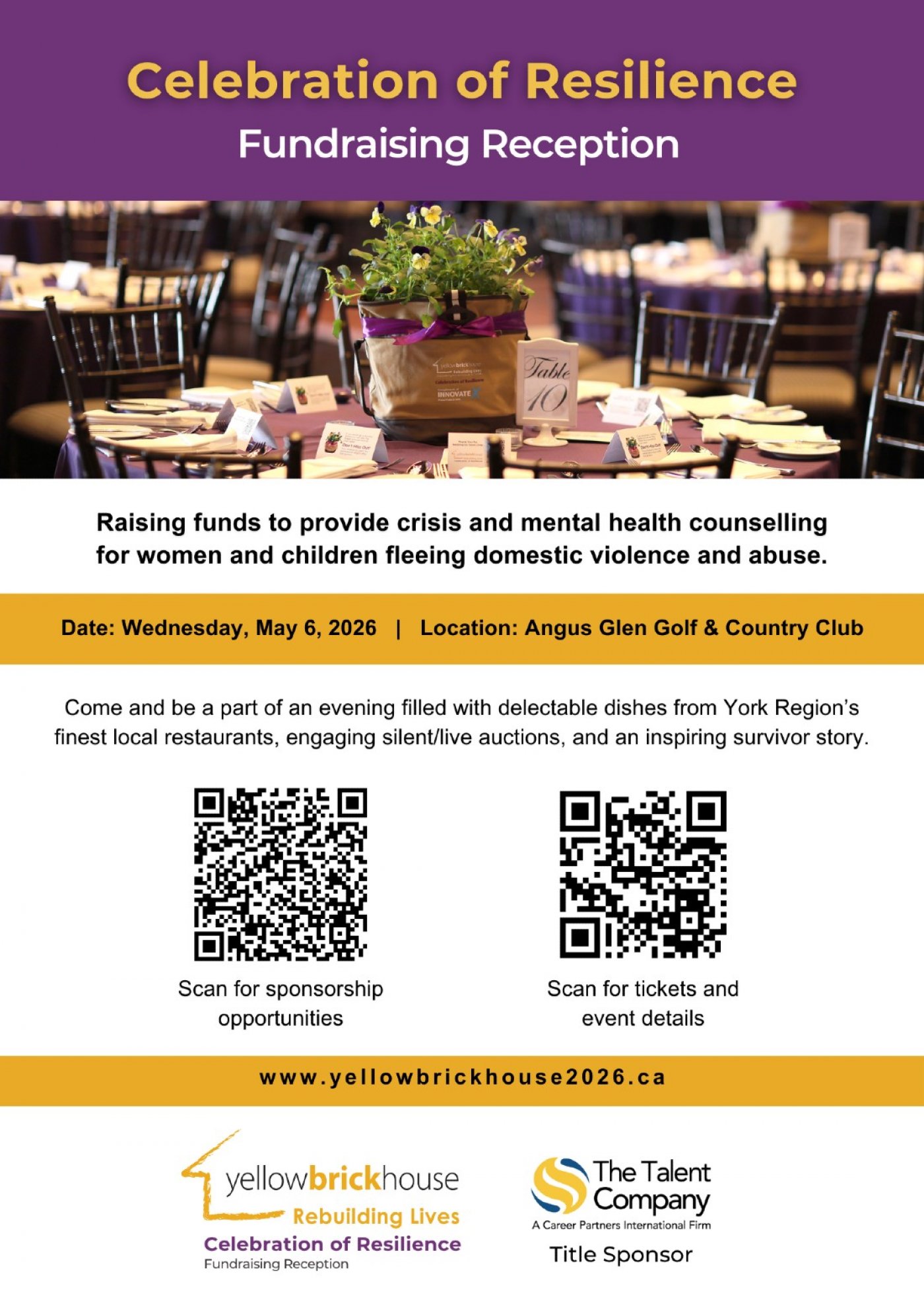 Come and be a part of an evening filled with delectable cuisines from York Region’s finest Local Restaurants, Engaging Silent/Live Auctions, Mystery Wine Wall bags for purchase, light entertainment, and an inspiring survivor story.