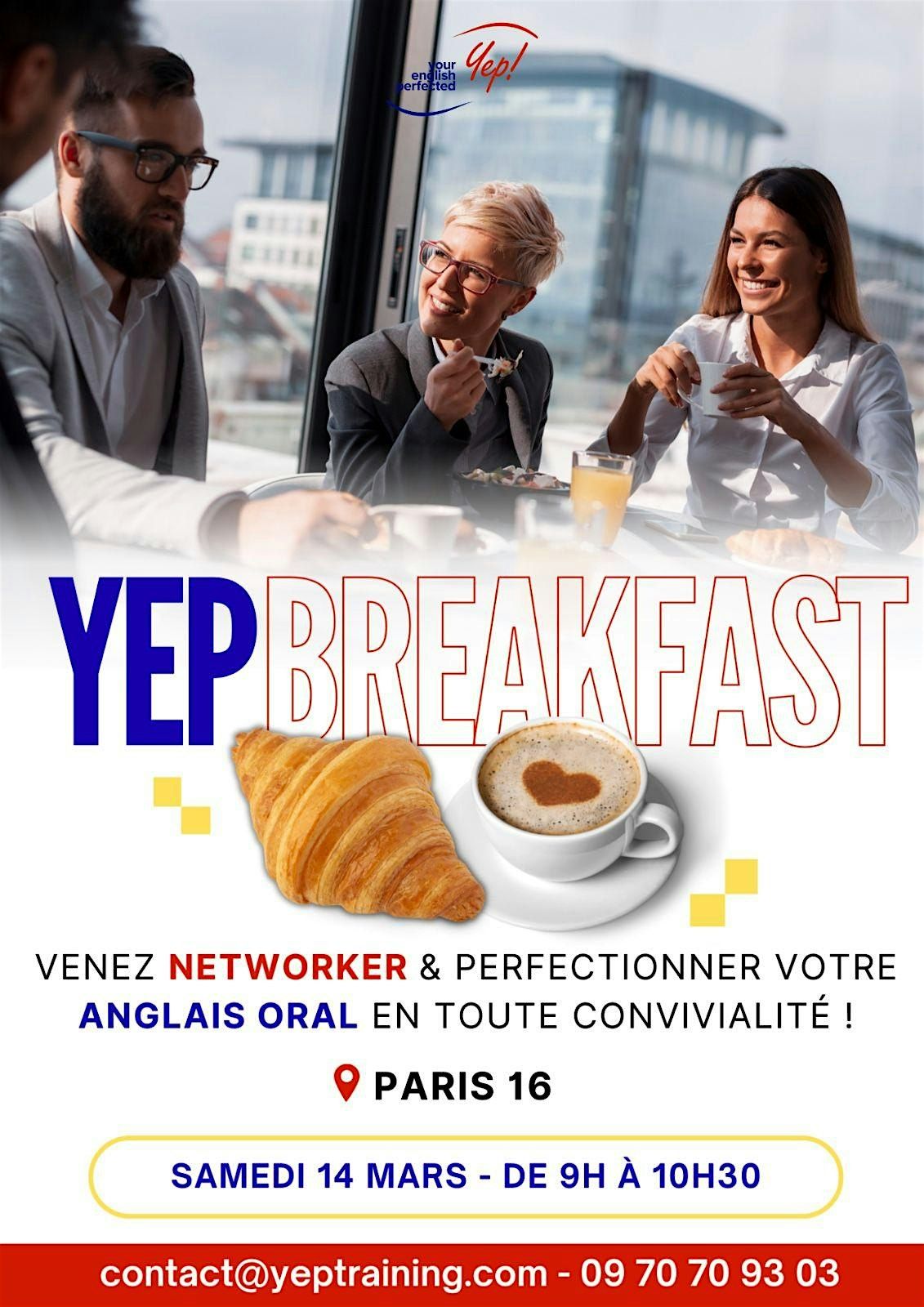 Rejoignez-nous pour le YEP Breakfast, un in-person meetup unique Ă Paris oĂč vous pourrez networker, practice your English et dĂ©marrer votre journĂ©e avec de vraies good vibes.