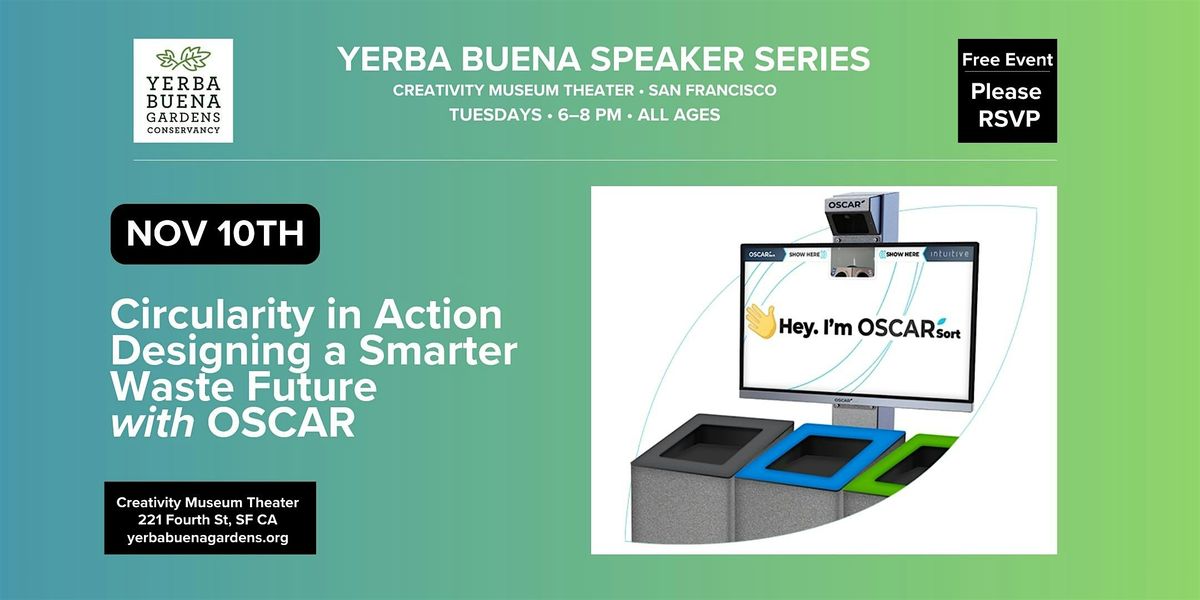 Yerba Buena Speaker Series: Circularity in Action Designing a Smarter Waste Future with . Join us November 10th, 2026 at 6:00 PM (PDT) for an engaging evening at the Creativity Museum Theater.