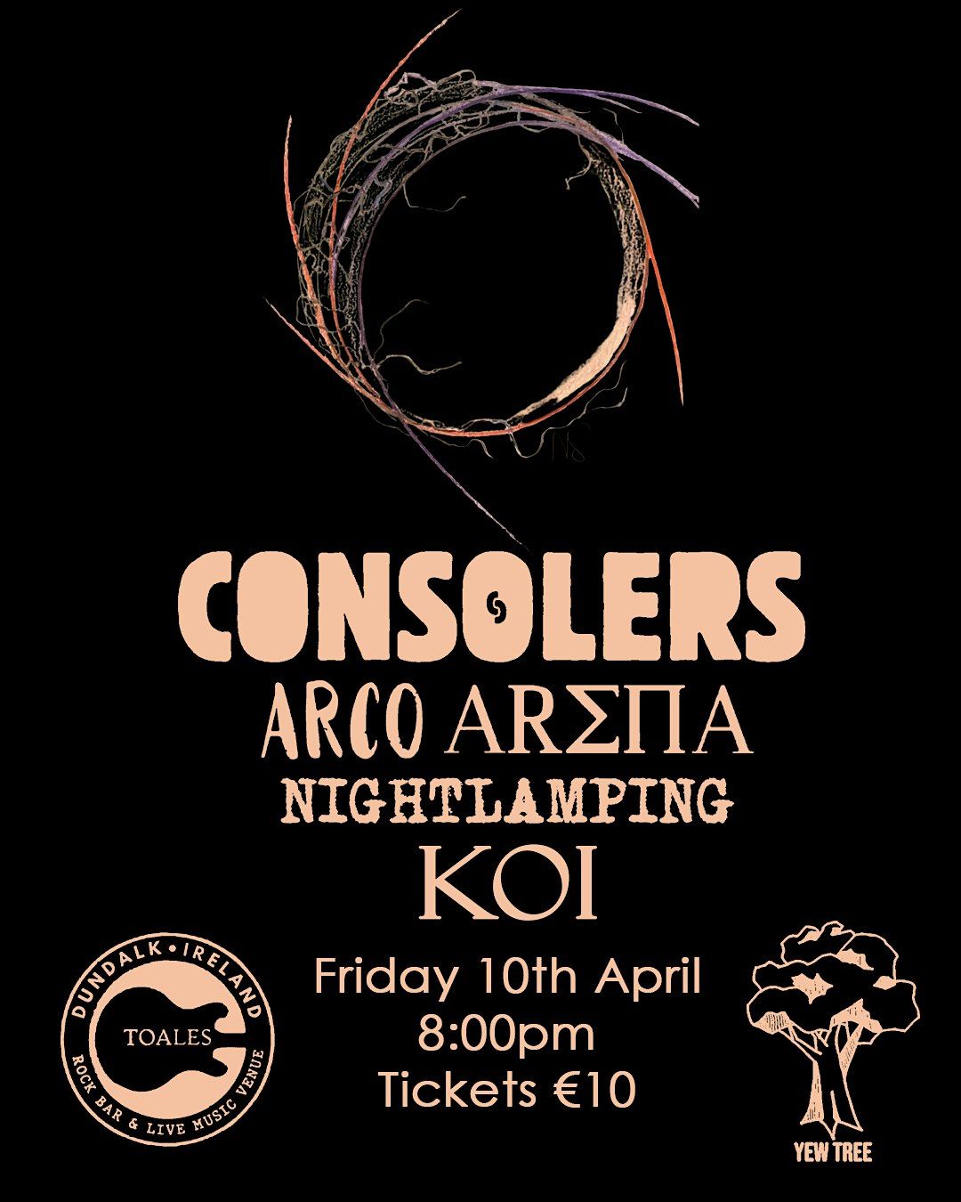As part of their Irish tour to promote their album Deep Breaths, Consolers play Dundalk with support from Arco Arena, Nightlamping and Koi