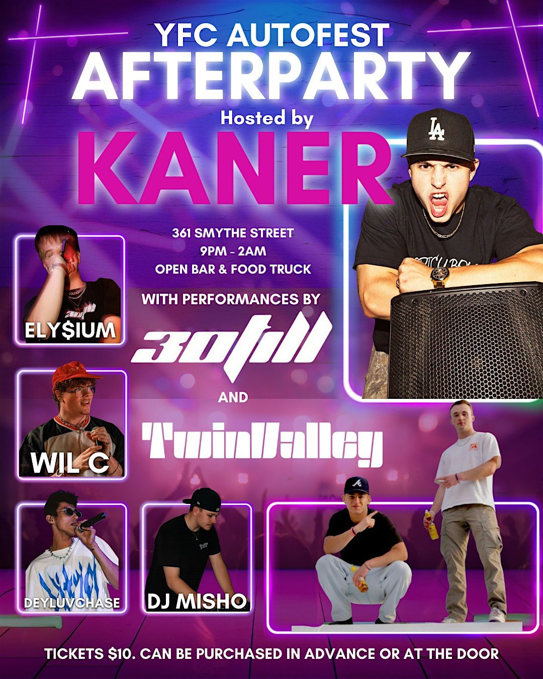 Join us for the YFC AutoFest Afterparty, hosted by @kaner_bud , with live performances by @twinvalleydj and @30tilltakeoff