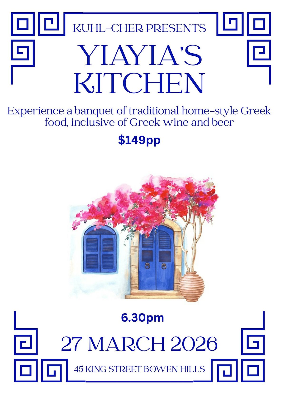 Experience a banquet of traditional home-style Greek food, inclusive of Greek wine and beer