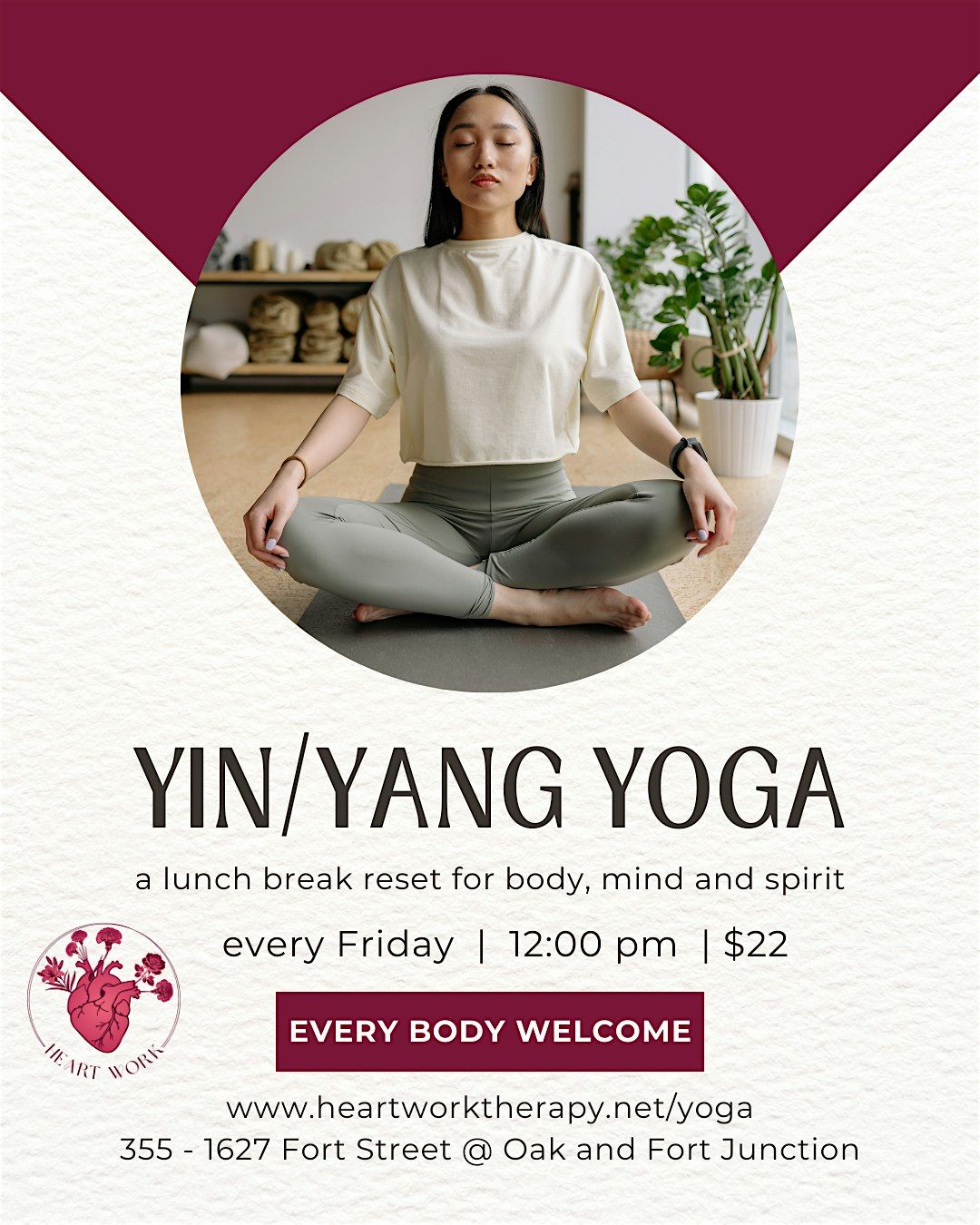 Yin/Yang yoga starts with an accessible, energizing flow (yang energy) and ends with grounding yin shapes, guiding you from activation into deep rest.