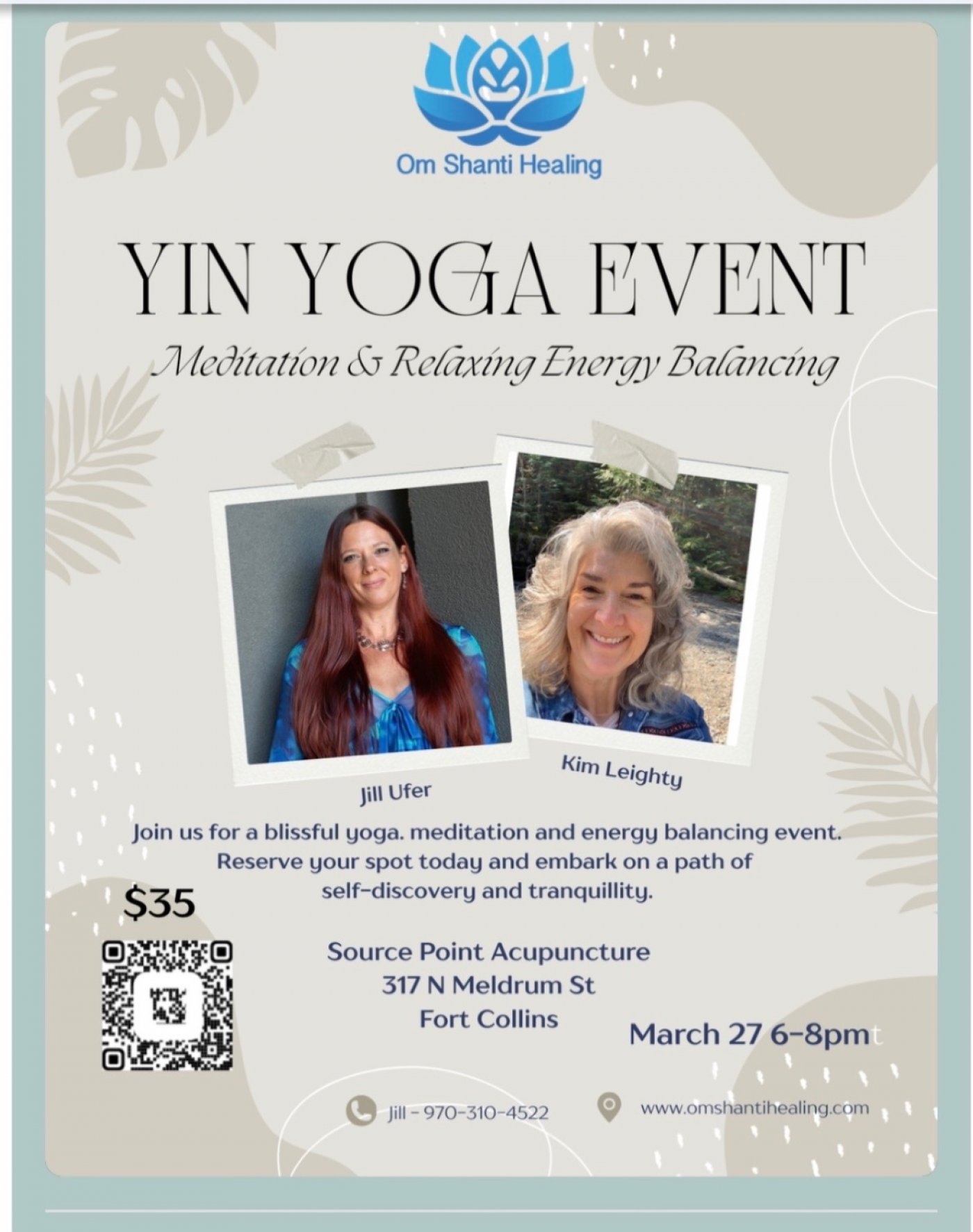 Join Jill Ufer of Om Shanti Healing and Kim Leighty for a relaxing Friday night to set your weekend off right. We will be using props to relax and stretch our bodies in a yin style yoga class. This class is for all levels so come as you are in your stretchy pants and enjoy your night of opening the body, physically, energetically and grounding yourself into a place of deep relaxation and reset.