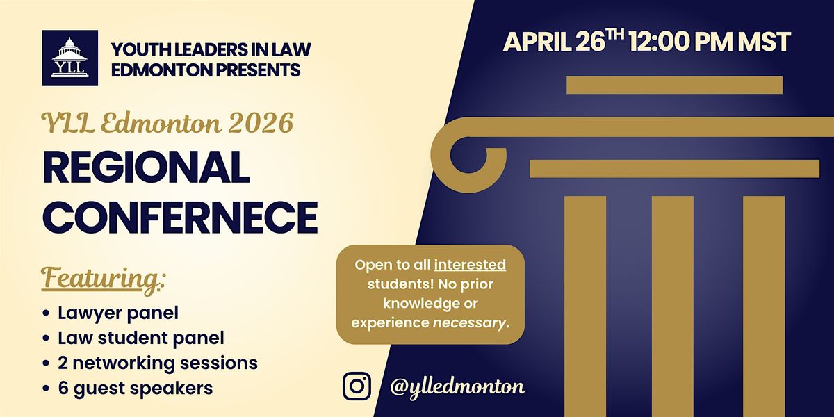 The YLL Edmonton 2026 Regional Conference is a space for students to get a real look at the legal field. Instead of guessing what law school or legal careers are like, attendees will hear candidly from lawyers, law students, and community professionals about their experiences: all the good, the hard, and the unexpected. We aim to give students clarity, direction, and honest insight so they can make informed choices about their future.